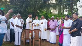 Foundation Stone Laying Ceremony and Blessing The ceremony was jointly conducted by Rev. Fr. Johnson Nil Nirappel, Vicar of Kaduthuruthy Valiyapally, Rev. Fr. Jis Ammanathu Kunneel, Vicar of Kattampak St. Mary’s Church, and Rev. Fr. Philip Ramachanatt, Vicar of Neendoor Unnimishiha Church.